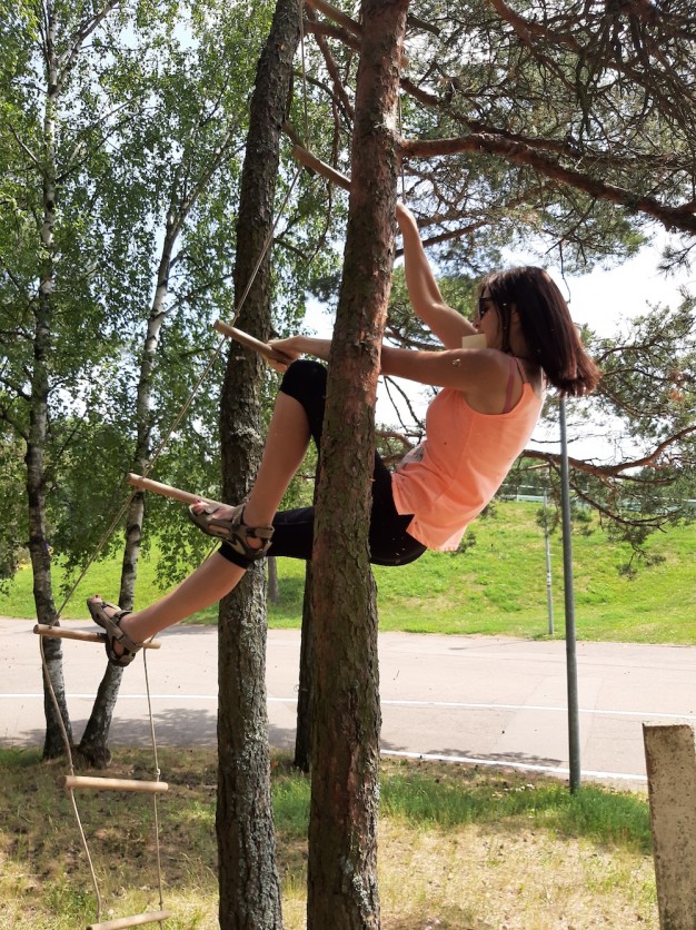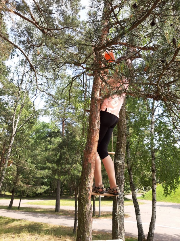 Pramoginė rungtis pareikalavo ištvermės ne tik dėl karščio, bet ir dėl punktų įkeltų medžiuose, labirintuose ir netgi ant pripučiamo batuto.