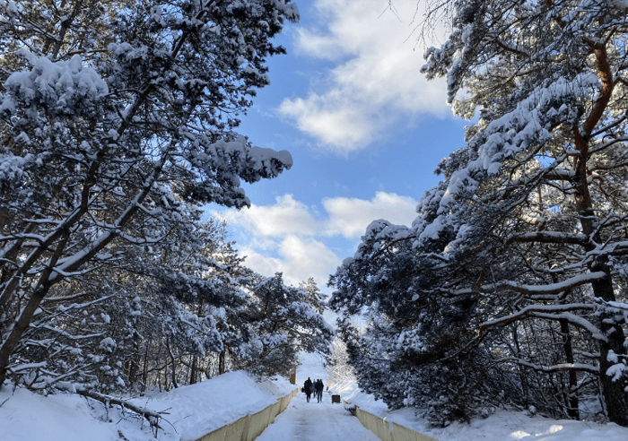 Šeštadienį klaipėdiečius džiugina reto grožio žiemiškas oras – per naktį gausiai prisnigo, pajūrio pakrantę, medžius ir miškus nuklojo akis džiuginanti balta sniego paklotė, o nuotaikas dar labiau kelia ir giedras dangus bei ryškiai šviečianti saulė.