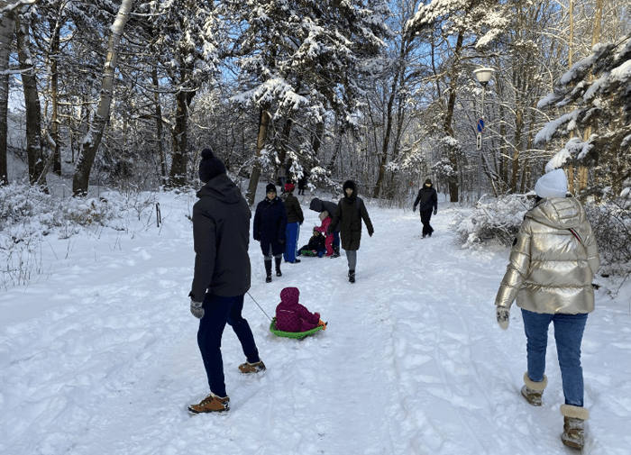 Į akis krenta ir sveiką gyvenimo būdą propaguojantys poilsiautojai, besimėgaujančiu puikiu oru, vaikštant su šiaurietiško ėjimo lazdomis, taip pat su lygumų slidėmis, o vaikams didžiausia atrakcija – čiuožinėjimas nuo kopų kalniuko su rogutėmis arba specialiomis slidinėjimo lentomis.