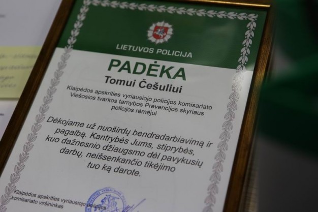 Renginio metu pareigūnai dėkojo visiems žmonėms, kurie, dirbdami neatlygintinai, prisideda prie to, kad policijos darbas būtų lengvesnis.
