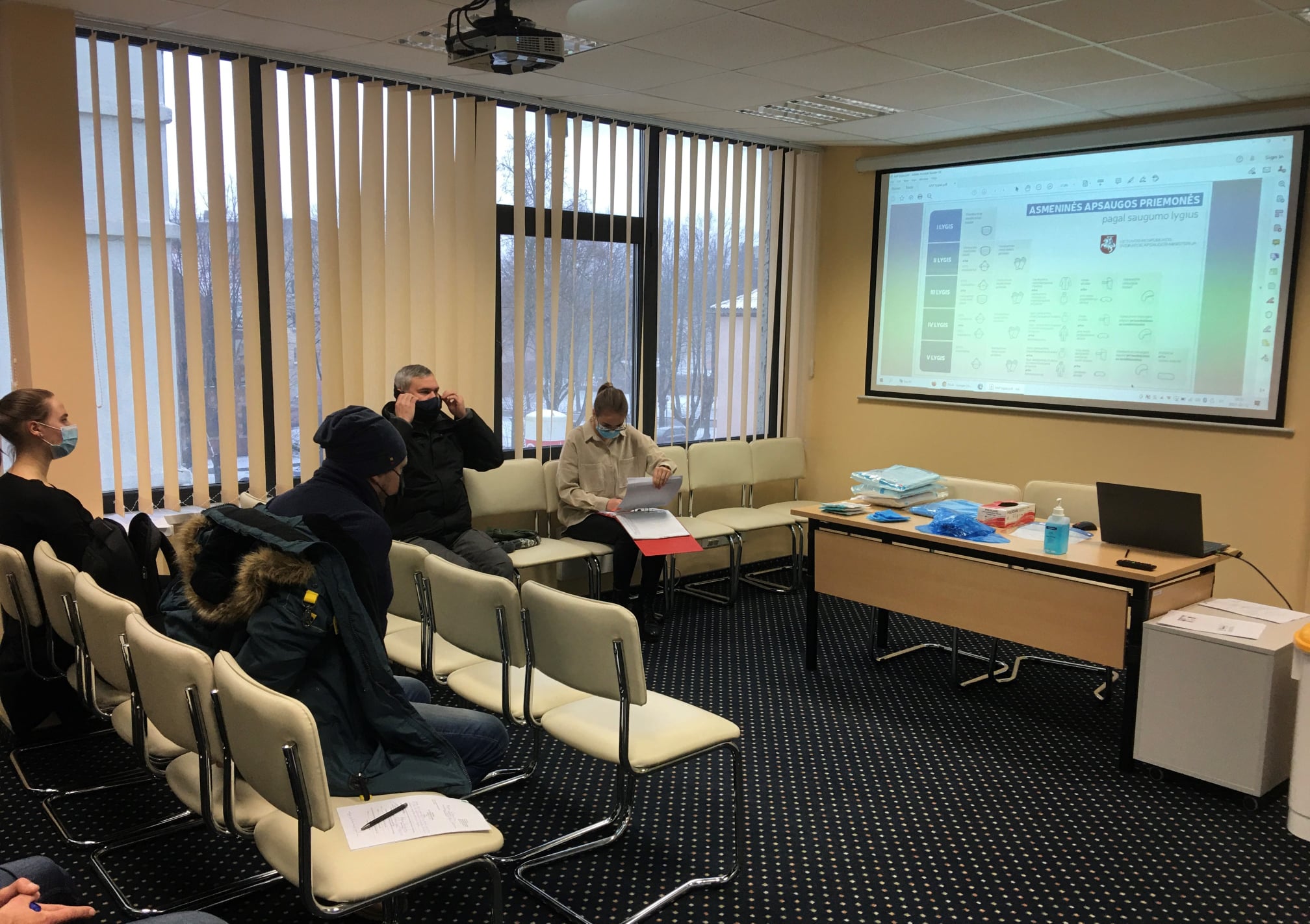 Pirmieji savanoriai, kurie talkins kovidiniame, Priėmimo - skubios pagalbos ir chirurginio profilio skyriuose, atvykę į ligoninę pirmiausia buvo supažindinti su darbų saugos reikalavimais, vidine įstaigos tvarka bei apmokyti kaip teisingai naudoti asmens apsaugos priemones ir laikytis nustatytų higienos reikalavimų. Šauliams buvo parodyta mūsų įstaigos parengta vaizdo medžiaga, kaip teisingai užsidėti kaukę, kostiumą, kepurę ir t.t. , vėliau vyko praktiniai užsiėmimai.
