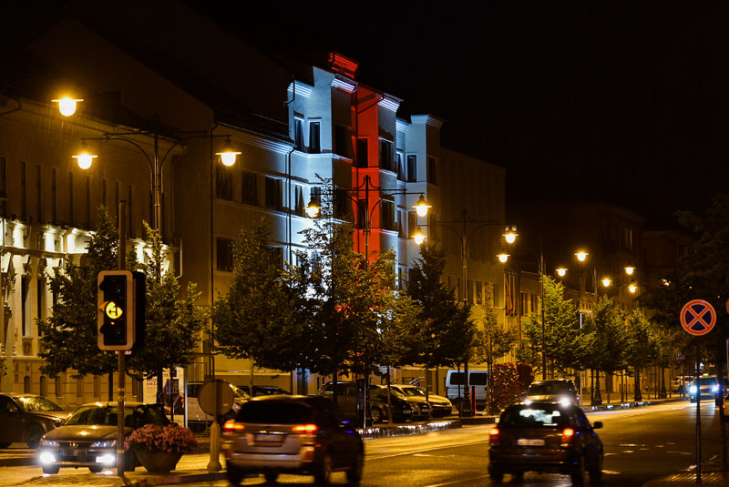 Klaipėdoje 20 valandą Klaipėdos miesto savivaldybės pastato Liepų g. 11 fasadas penkioms valandoms nušvito istorinės baltarusių vėliavos spalvomis – balta ir raudona.