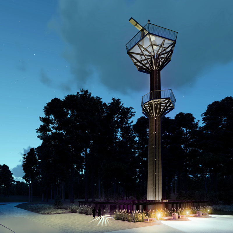Pasak projekto "Gyvas" autorių, statiniu siekta užpildyti tuštumą, formuoti natūralią harmoniją - bokšto aikštelės projektuotos žvelgiant į pušies lajų išdėstymą.