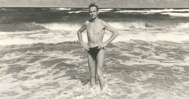 BANGOSE. Kaip ir šiandieninė karta, anuometinis jaunimas mėgdavo fotografuotis Baltijos bangų fone. Nuotraukoje - Alfonsas Linaburgis.