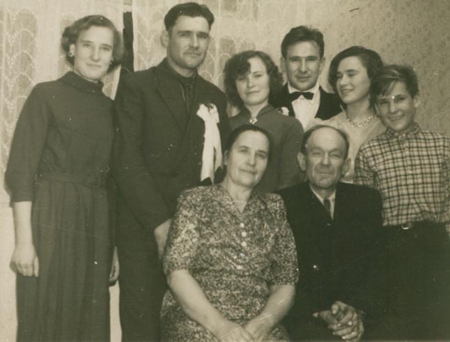 ŠEIMA. Savo tėvonijoje - Lelijų 9 -ajame name - visa Viršilų šeima. Sėdi Stanislovas ir Ona Viršilai, antroje eilėje iš kairės jų dukterys ir sūnūs Bronė, Stasys, Janina, Jonas Vytautas, Morta, Petras.