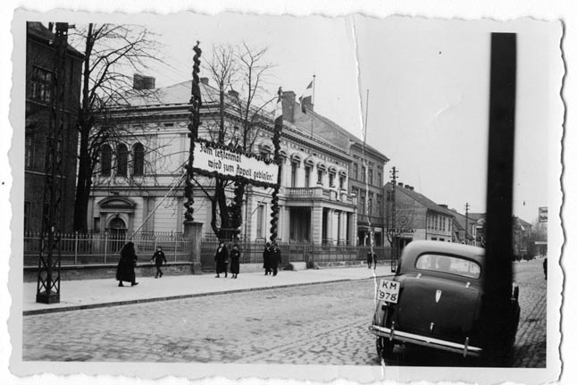 REZIDENCIJA. Hermano Gerlacho rezidencija fotografuota galbūt 1939 metais, nes transparante tarp namų - nacių himno citata.