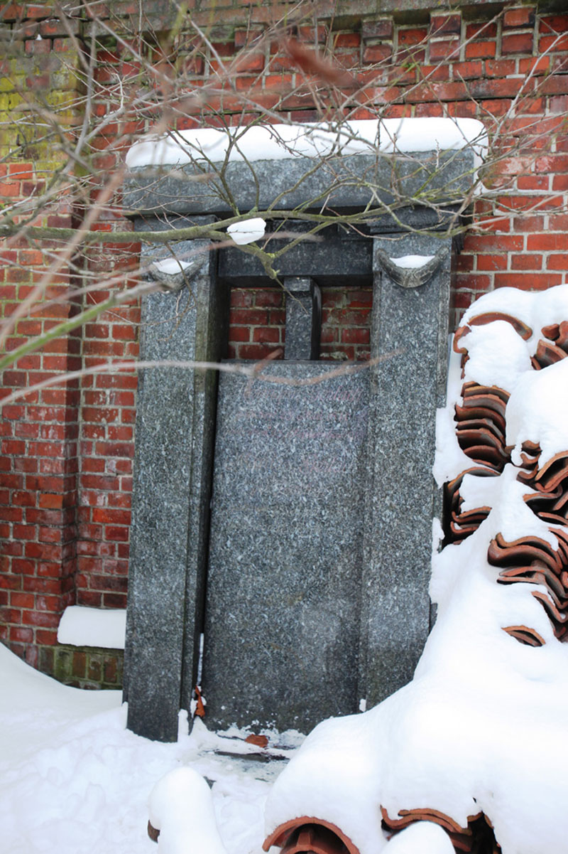 Ant jų - kuklūs, prašalaičiui beveik nieko nesakantys ir jau beveik nebeįskaitomi įrašai: "Herman Gerlach geboren 23 Mai 1846, gestorben 25 September 1913" ir "Marie Gerlach geb. Zacher geboren 28 April 1855 gestorben 17 April 1937."