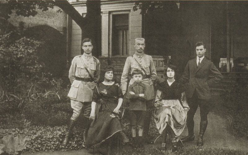 ŠEIMA. Generolo Odry šeima rezidencijos sode. Iš kairės: Polis (Paul) - vyresnysis sūnus karininkas, Polinė (Pauline), Dominykas (Dominique), prieš jį - Pjeras (Pierre), būsimasis karininkas, Žana (Jeanne), gydytoja, Žoržas (Georges), inžinierius. Nuotrauka daryta 1920-21 m.