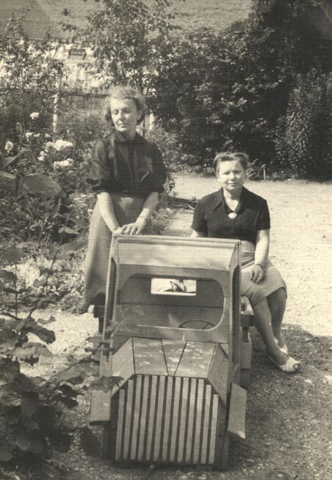 MAŠINYTĖ. Nežinia,kaip ir iš kur darželio vedėja Marija Kučinskaitė (dešinėje) darželio auklėtiniams buvo parūpinusi ir mašinytę.