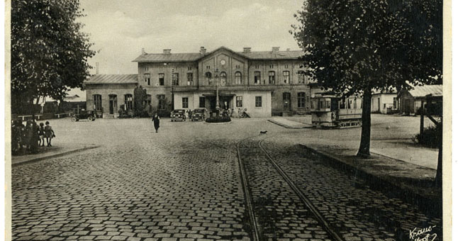XIX a. antrojoje pusėje geležinkelio stočiai vieta buvo parinkta ganyklose ir pievose. Beveik nepakitęs geležinkelio stoties pastatas tebedunkso ir šiandien. Stotis buvo statoma pagal 1850 m. Prūsijoje priimtus reikalavimus - laukiamoji salė, bilietų kasa, bagažo išdavimo patalpa, raštinė, restoranas, o antrajame stotie aukšte - darbuotojų butai. Pagal tuos pačius Prūsijos reikalavimus šalia stoties turėjo būti skveras, o į stotį vedanti gatvė apsodinta medžiais. Stotis pagal visus tuos reikalavimus buvo pastatyta 1875 m.
