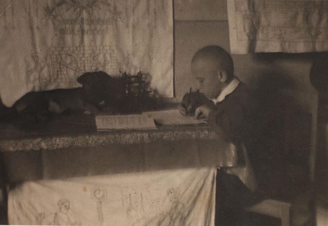 PAMOKOS. Pamokas Valentinas ruošdavo virtuvėje, kuri buvo padabinta mamos Domicėlės siuvinėtais "paveikslais". Viename jų darbščiomis jos rankomis išsiuvinėta "Duona kasdieninė mūsų maistas". Berniukas turėjo ir ištikimą draugą Reksą, kuris būtinai įsitaisydavo šalia savo šeimininko ant stalo ir kantriai laukdavo, kada išmuš jo laiminga valanda padūkti.