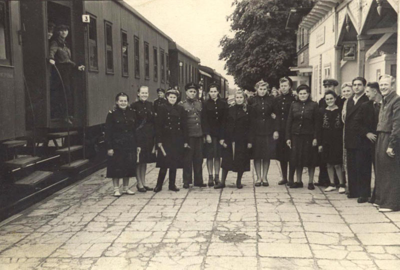 BUDĖTOJA. Jevgenija Miniailo (dešinėje), dirbdama Klaipėdos geležinkelio stoties budėtoja, yra padėjusi dėl įvairių priežasčių į keblias situacijas patekusiems keleiviams. Liubovės Miniailo-Stanišauskienės archyvo nuotr.