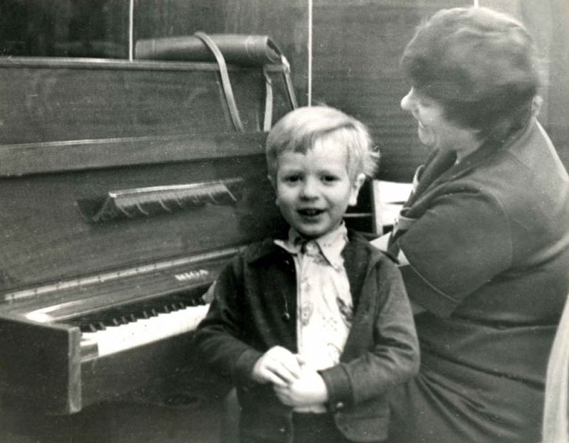 MOKYTOJAI. Pirmoji Deivydo muzikos mokytoja buvo kaimynė Elena Mončienė iš gretimo namo. Viskas labai patogu - Deivydas neidavo į kiemą, kur karaliavo dažniausiai "Trojnoj odekolon" sukliukinę ne ant savęs, o į save smirdintys dėdės, ir kniaukdama lakstė katinų populiacija. Jis eidavo pas muzikos mokytoją, kuri ir buvo pirmoji Deivydo Zvonkaus ateities lipdytoja. Su pirmąja mokytoja nuotraukos nėra. Tačiau tų mokytojų buvo ir daugiau. Pačiomis įvairiausiomis progomis. Šioje nuotraukoje - vienas iš pirmųjų Deivydo "koncertų". Asmeninio archyvo nuotr.