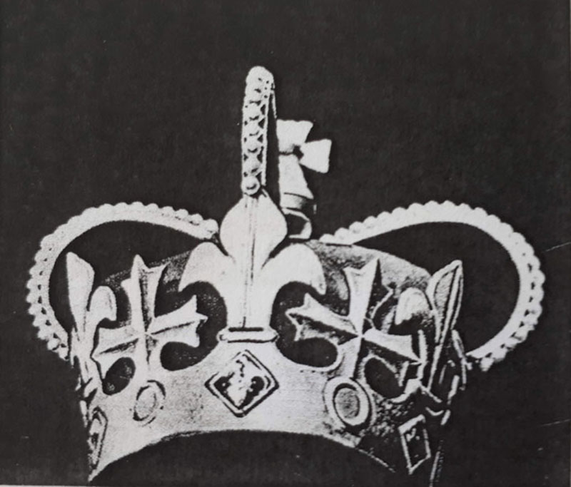 KARŪNA. 1969 m. Arūno Tarabildos karūnos projektas Justino Marcinkevičiaus dramai "Mindaugas", kuri pirmiausiai buvo pastatyta Klaipėdos dramos teatre. Šio spektaklio scenografija tapo paskutiniu labai ryškiu A. Tarabildos kūrybos pėdsaku. KDT archyvo nuotr.