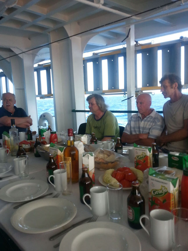 20 metų jūras ir okeanus raižęs kapitonas prisipažino, kad alkoholio laive netoleruodavo. "Dėl to esu "pelnęs" priekaištų, netgi dalies įgulos, kuri nuolat keisdavosi, nemalonės. Bet... Susirenkame į reisą pusė iš anksčiau, maždaug pusė naujokų. Niekas nepaneigs, kokia svarbi komandos dermė dirbant darbą. O dermė niekada nesiras, jei žmonės nepažįsta vienas kito. Tad taisyklei dėl alkoholio vartojimo laive kartais nusižengdavau. Ir tai būdavo šventės", - sakė kapitonas. Naujieji, jeigu jie išpuldavo reise, žinoma, būdavo švenčiami. Iš jų labiausiai išsiskyrė tie, kai su laivu "Venta" buvo kertamas ekvatorius.