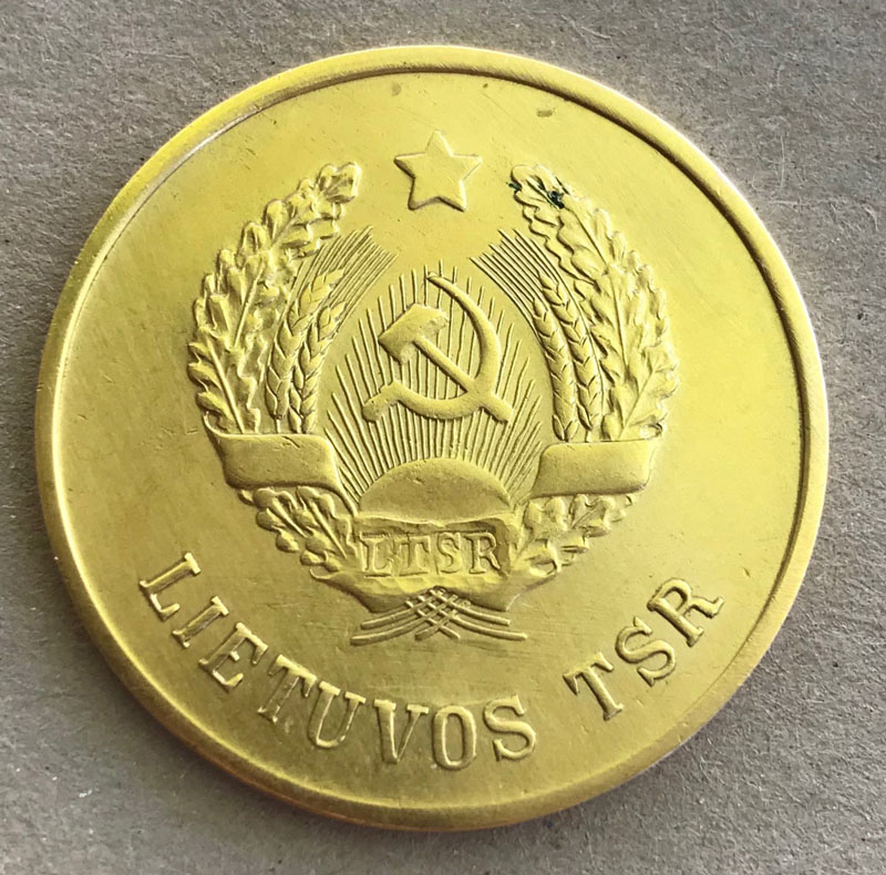 Stebėjausi, kad 1945 m., vos pasibaigus II pasauliniam karui, jau buvo atlieti tokie medaliai su sovietinės ideologijos atributika: vienoje medalio pusėje įspausta Lietuvos TSR, kūjis su pjautuvu, užrašas "Už gerą mokymąsi ir pavyzdingą elgesį". O kitoje medalio pusėje - tarp saulės spindulių (juk visu intensyvumu švietė J. Stalino saulė...) - knygos siluetas ir simboliai, primenantys raides. Puslapio viduryje dar trys raidžių simboliukai, labai primenantys Gedimino stulpus. To medalio dizaino kūrėjas tikrai labai rizikavo... Bet galėjo ir išsisukti, nes Gedimino stulpai juk nepilni. O budrūs ideologijos sergėtojai juk galėjo įžvelgti ir bausti Sibiro "kurortais". Už menkesnius dalykus, o kartais ir visai be priežasties ten žmonės atsidurdavo "kurortauti". O čia - užuomina į Gedimino stulpus...