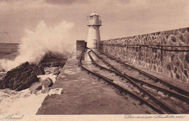 ŠVYTURIAI. 1796 metų rugsėjo 1 d. įžiebtas Klaipėdos švyturys. 1819 m. rekonstruotas ir paaukštintas. Nuo 1874 m. pradėtas dažyti baltais ir raudonais kvadratais, todėl buvo vadinamas Raudonuoju švyturiu. Susprogdintas 1945 m. Atstatytas laikinas medinis, o 1950 m. pastatytas gelžbetoninis, dunksantis iki šių dienų. O Baltuoju vadintasis, pasitinkantis į uosto akvatoriją įplaukiančius laivus, nunyko. Nunyko ir siauruko geležinkelio bėgiai, vedę iki pat Baltojo švyturio durų. Nuotraukos iš Mažosios Lietuvos istorijos muziejaus fondų.