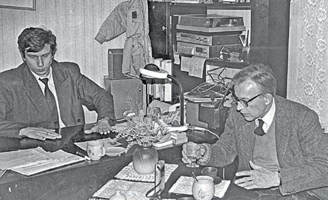 GARBINGAS SVEČIAS. Redaktoriaus Gintaro Tomkaus kabinete - šviesaus atminimo ambasadorius Stasys Lozoraitis. "Vakarų ekspreso" archyvo nuotr.