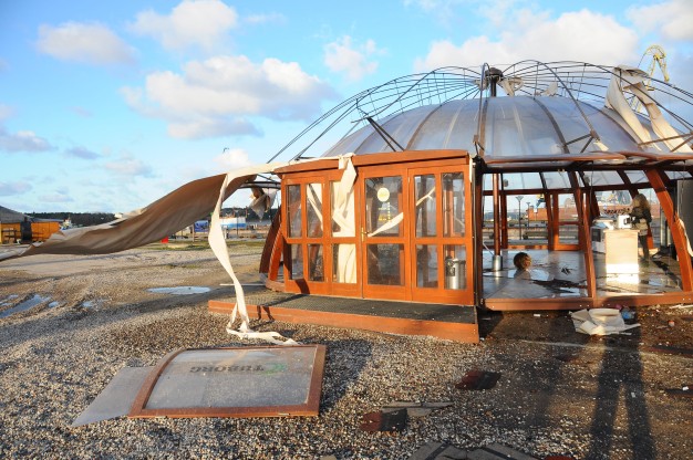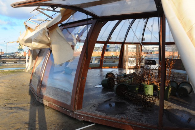 Kruizinių laivų terminale vėjas nuplėšė kavinės stogą, mieste po nakties plevėsuoja nudraskyti reklaminiai tentai, kai kur nuo pastatų nukritusios plytos bei čerpės, parkuose išvartyti medžiai.