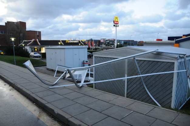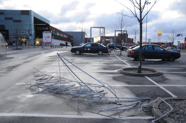 Netvarkomas buvęs dujų sandėlis, esantis prie Liepų ir Trilapio gatvių sankryžos, pirmadienio naktį griuvo neatlaikęs stipraus vėjo, kuris mieste bei apskrityje pridarė ir daugiau žalos.