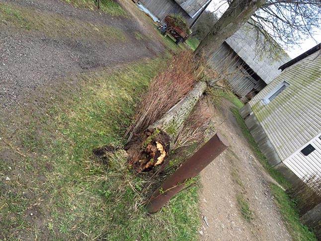 Beje, nuverstas medis stipriai papuvęs - vis vien būtų tekę kirsti...
