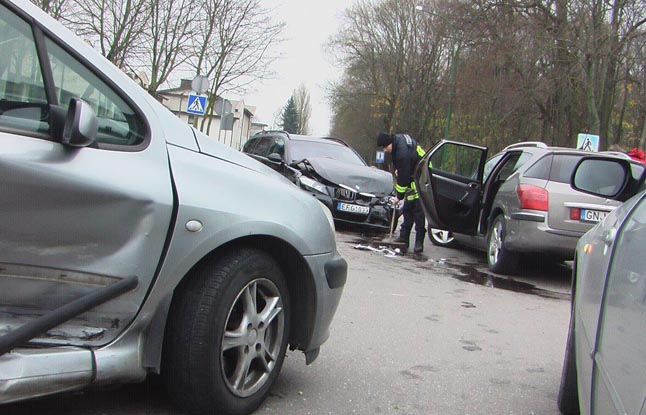 Antanas, vairavęs "Peugeot 307", įvažiavo į sankryžą ir susidūrė su pagrindiniu keliu važiavusiu automobiliu "BMW 330", kurį vairavo 37-erių metų Filipas B. Po smūgio "Peugeot 307" pakeitė važiavimo kryptį, apsisuko apie savo ašį ir čiuoždamas atkišo kitą šoną šalutiniame kelyje stovėjusiam automobiliui "Peugeot 407", kurio vairuotojas Ignas (gim. 1983 m.) tuo metu buvo sustojęs prie kelio ženklo "Stop". Staiga į jį atskriejo kitas "Peugeot". Automobilis gavęs iš abiejų šonų, sukiužo, iš jo iškrito atsarginis ratas. Visuose automobiliuose iššaudė saugos pagalvės.