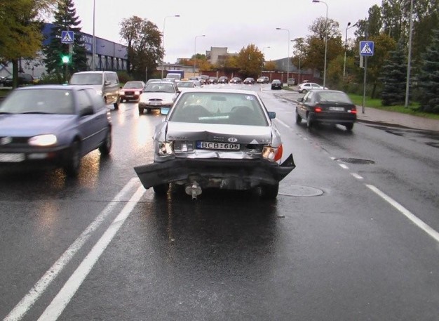 Vakarėjant automobilis "Ford Focus" į priešais važiavusios "Audi 80" galą trenkėsi netoli sankryžos su Bijūnų gatve, ties Klaipėdos apskrities Vyriausiojo policijos komisariato Kelių policijos biuro pastatu.