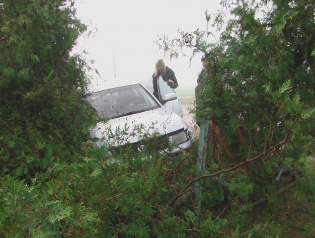 Per avariją automobilio salone buvęs vaikas nenukentėjo nes buvo įsitaisęs specialioje kėdutėje, o avarija net nebuvo užregistruota Klaipėdos rajono policijos komisariate, nes kaltininkė už padarytą žalą (išvartytas tujas) atsiskaitė iš karto.