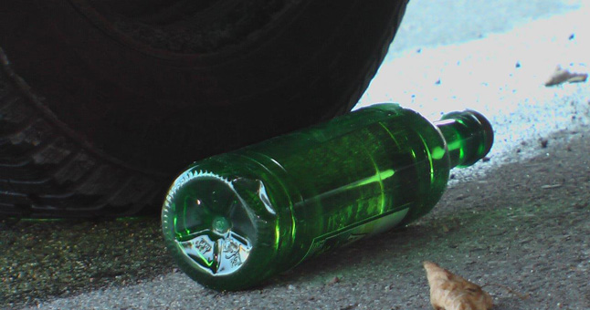 Iš partrenkto dviratininko kišenės iškrito butelis
