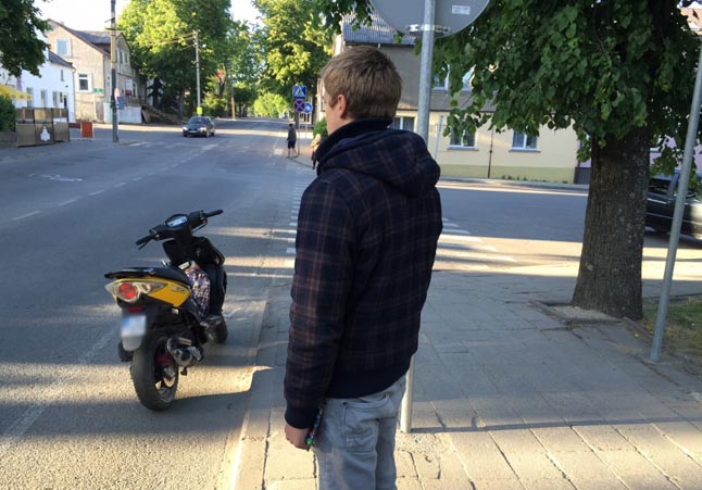 Gargžduose sustabdytas nepilnametis motorolerio vairuotojas, kuris vairavo transporto priemonę neturėdamas teisės vairuoti.