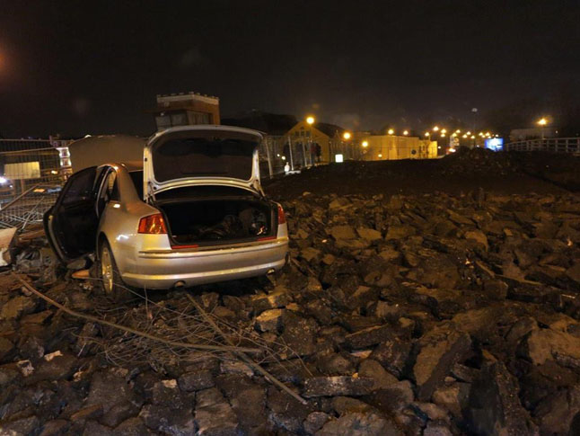 "Audi A8", atskriejusi Naujojo Uosto gatve, iš savo kelio šlavė betoninius atitvarus, kelio ženklus, vielines tvoras, laikinuosius šviesoforus. Galiausiai automobilis užstrigo asfalto išvartose.