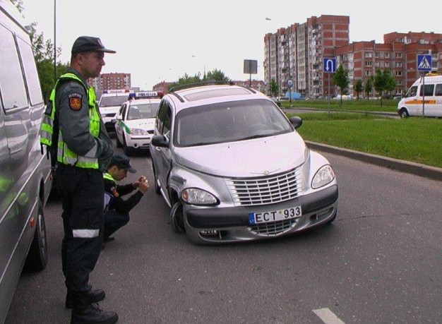 Apie tai informuoti policininkai puolė ieškoti šios mašinos. Ją ties Sendvario žiedu sulaikė atskubėjęs garsiojo uostamiesčio Kelių policijos biuro pareigūno Jono Dičiaus ekipažas.