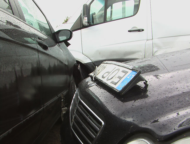 Tuo tarpu "Mercedes Benz Sprinter" vairuotojui stovėjuisiame nuokalnėje ir laukusiam, kuomet galės pajudėti iš šalutinės gatvės, liko tik galimybė stebėti, kaip į jo autobusiuką atskrieja kiti du automobiliai.