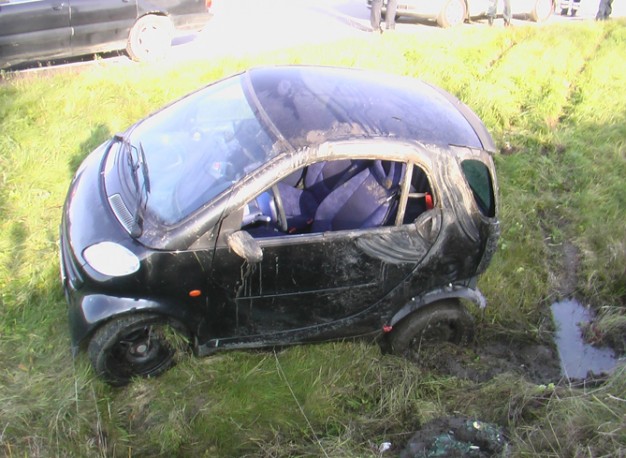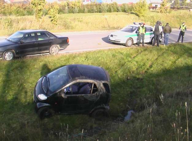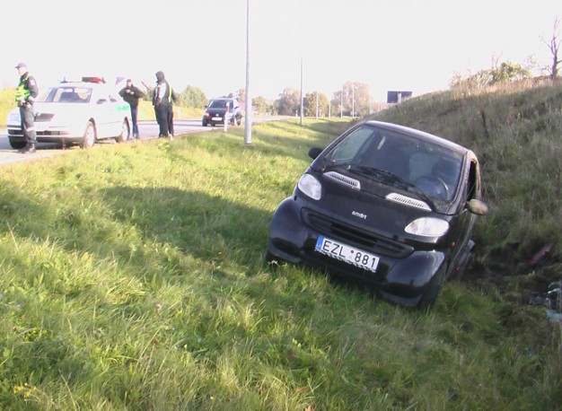 Šio kontakto užteko ir mažylį automobilį sumėtė, jis nuvažiavo į pakelės griovį ir vertėsi. "Smart" vairuotojai prireikė medikų pagalbos, ji išgabenta į ligoninę. Pirminiais duomenimis, sužalojimai - nesunkūs.