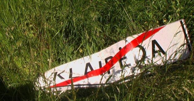 "Honda" nuvertė Klaipėdos riboženklį bei ženklą, žymintį, jog už 2 kilometrų yra Lėbartai - kaimas, klaipėdiečiams asocijuojantis su mirtimi.