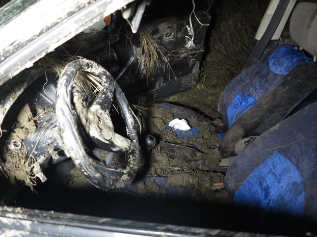 Priekinėje keleivio sėdynėje rastas sužeistas Plungės rajono Medingėnų kaimo gyventojas Vytautas N. (gim. 1989 m.).