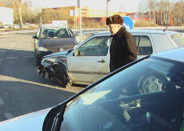 Tuo metu iš Minijos gatvės į sankryžą įvažiavo "VW Golf". Juo keliavo tėvas su sūnumi. Automobiliai susidūrė.