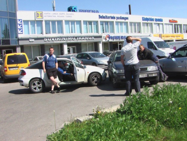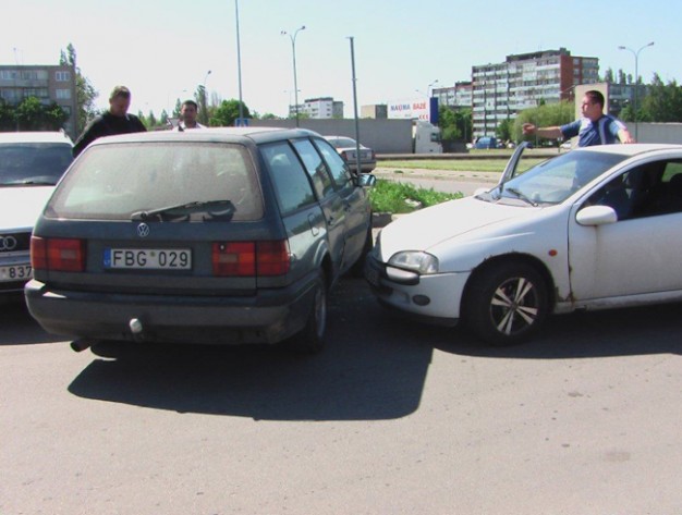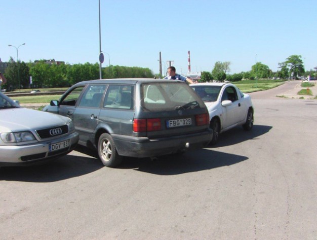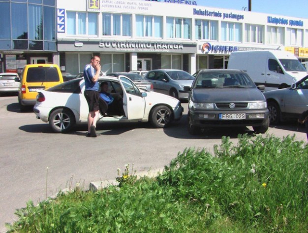 Iš stovėjimo aikštelės į Šilutės plentą nusprendęs važiuoti "Volkswagen Passat" savininkas nepraleido tiesiai atvažiuojančio "Opel Tigra". Avarijos kaltininkas jokiu būdu nenorėjo pripažinti "kliūties iš dešinės" taisyklės ir vietoje deklaracijos pildymo nusprendė palaukti policijos pareigūnų, kurie atvykę tikriausiai dar ir skirs baudą už kelių eismo taisyklių pažeidimą.