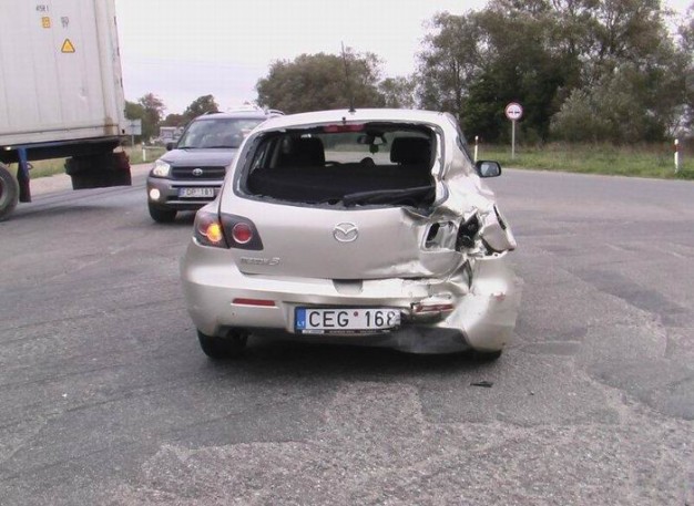 Po šio smūgio "Mazda" apsisuko 180 laipsnių, jį vairavusi Ketvergių gyventoja (gim. 1976 m.) nenukentėjo.