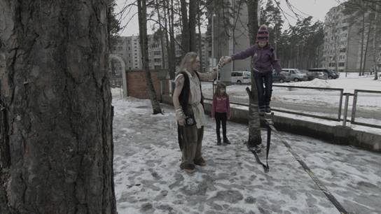 Olga: šią sceną filmavome dviese – visi operatoriai buvo užimti. Visa ceremonija prasidėjo vėluojant ir jau buvo sutemę, buvo daugiau kaip keturiolika laipsnių šalčio… Ši maudymosi eketėje scena – filmo kontekste tarsi parodo kaip aukštai yra įtampa. Tai metas apsiplauti ir ieškoti vidinės ramybės.