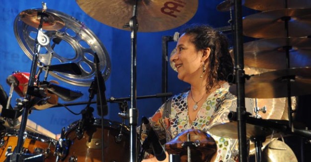 Šiltai su publika bendravusi legendinio trimitininko Miles Davies bendražygė demonstravo universalius grojimo perkusija ir būgnais įgūdžius, įsitaisiusi prie įspūdingo būgnų komplekto.