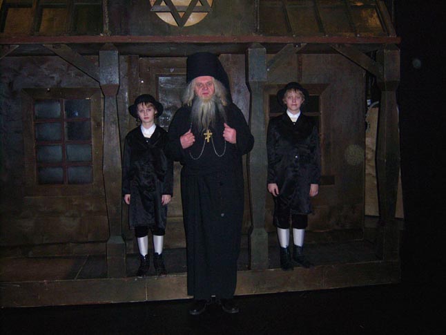 ARTISTAI. Spektaklyje "Smuikininkas ant stogo" vaidino ir Romualdas Butkevičius, ir jo sūnūs. Nuotraukos iš Romualdo BUTKEVIČIAUS archyvų.