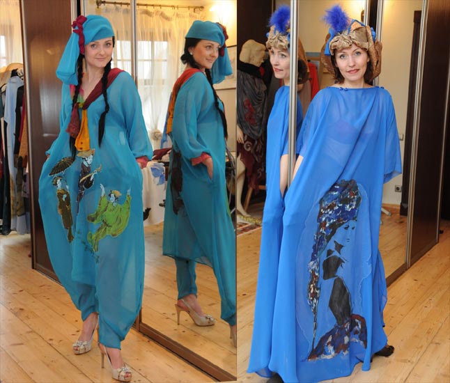 Mums kalbantis, į jos namus kaip tik rinkosi choreografės Agnijos Šeiko šokėjos - matuotis, kurį iš 50 apdarų demonstruos ant podiumo. Ir aikčiojo iš nuostabos - ir dėl rytietiškų-nerytietiškų modelių, ir dėl tapybos įvairovės.