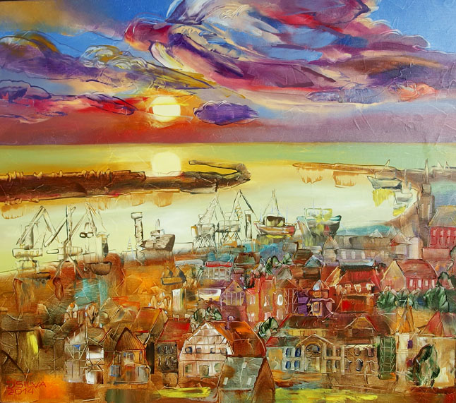 Angelas virš Klaipėdos 80x90 drobė, aliejus.