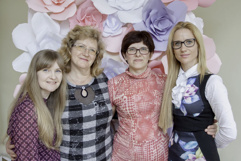 KOMANDA. Prie parodos "Be tavęs būčiau kitoks" atsiradimo prisidėjo (iš kairės) "Medeinės" mokyklos mokytoja metodininkė Laima Naraškevičienė, direktoriaus pavaduotoja Valentina Samuchova, fotografė Laima Žemeikienė ir mokytoja metodininkė Edita Mickuvienė.