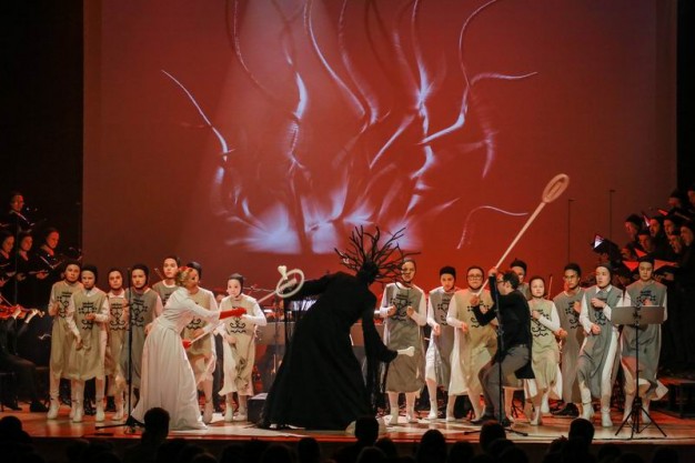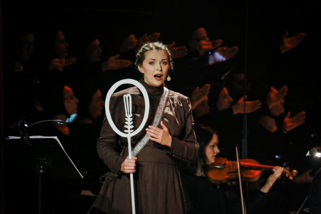 Operos autorius – pripažintas kompozitorius Bronius Kutavičius. Operos pastatymui buvo suburtas gausus puikių atlikėjų būrys: Klaipėdos kamerinis orkestras (meno vadovas Mindaugas Bačkus), Klaipėdos choras „Aukuras“ (meno vadovas Alfonsas Vildžiūnas), dirigentas Egidijus Kaveckas, solistai Evelina Šimelionė, Gytis Šimelionis, Rasa Ulteravičiūtė, Klaipėdos Vydūno gimnazijos mokinių vokalinis ansamblis (vadovė Ingrida Bertulienė). Operą režisavo Birutė Mar, scenos vaizdu ir atlikėjų kostiumais rūpinosi dailininkė scenografė Indrė Pačėsaitė, vaizdo projekcijas sukūrė Karolis Bratkauskas.