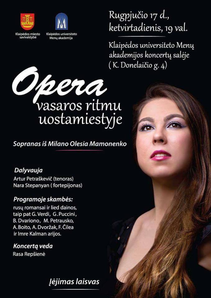 Drauge su dainininke scenoje pasirodys jaunas perspektyvus tenoras Artur Petraškevič, jiems akompanuos pianistė Nara Stepanyan.