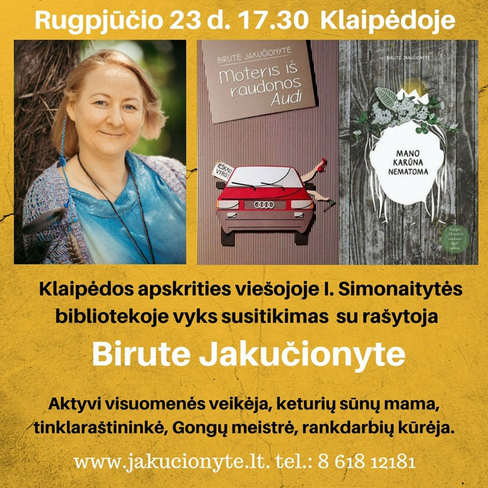 Renginio metu rašytoja organizuos loteriją, kurios prizai bus jos pačios sukurti siuvenyrai.