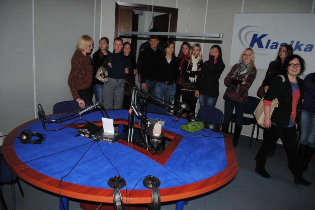 Po apsilankymo žurnalistikos institute, KU autobusiukas pajudėjo link Lietuvos radijo ir televizijos. Ekskursijos vadovė mielai praverdavo kiekvienas duris ir pasakodavo apie specifinį už kiekvienų durų slypinčio darbo ypatumus. Sužinojusi, jog grupė atvykusi net iš Klaipėdos, o studentai – būsimi žurnalistai, ji negailėjo savo laiko ir kalbų.