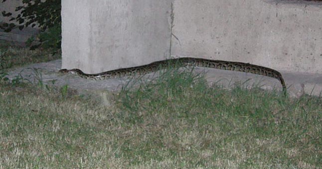 Savaitgalį iš daugiabučio ketvirtojo aukšto nakčia paspruko didelis smauglys; nedaug trūko, kad pro atvirą balkoną įsliuogtų pas kaimyną ir susirangytų jo lovoje, o gal - aplink kaklą. Šunų augintojai piktinasi: "Šunims tai privalomi antsnukiai, o smaugliams antsnukių neuždėsi, tai jie turėtų bent jau naktimis mūvėti tramdomuosius marškinius, kurie trukdytų sliuogti, kur nori."